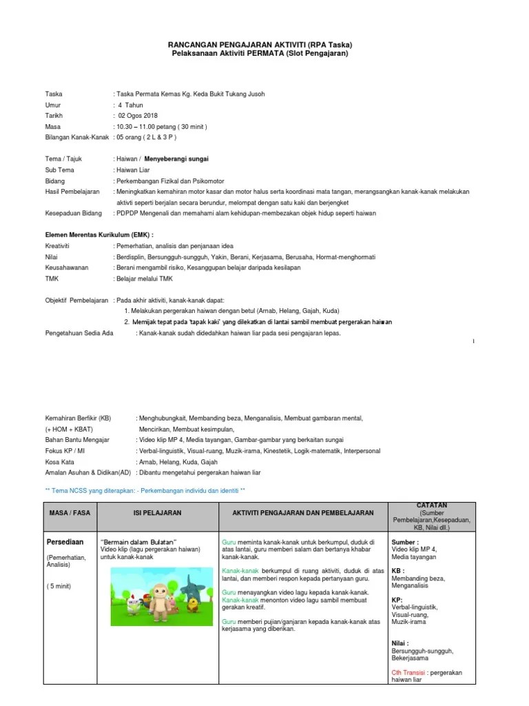 Bahan yang sesuai dengan tajuk, . Umur kanak kanak 1 tahun ( 5 . Rancangan pelaksanaan aktiviti (rpa) siri kap :1/ 2017nama agensi latihan: